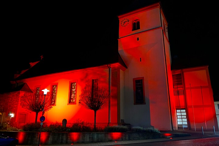 Mitte November findet weltweit der sogenannte "Red Wednesday" statt. Die Aktion wird angeregt vom internationalen Hilfwerks "Kirche in Not", das Christen in armen Ländern und in Situationen von Benachteiligung und Verfolgung unterstützen möchte. Als äußeres Zeichen dieses "Roten Mittwochs" werden öffentliche Gebäude und Kirchen mit rotem Licht angestrahlt. So war es auch am 19. November im Markt Stadtlauringen. Das Schloss Craheim und die Kirche St. Johannes Stadtlauringen leuchteten rot zum sichtbaren Zeichen der Solidarität mit verfolgten Christen weltweit.