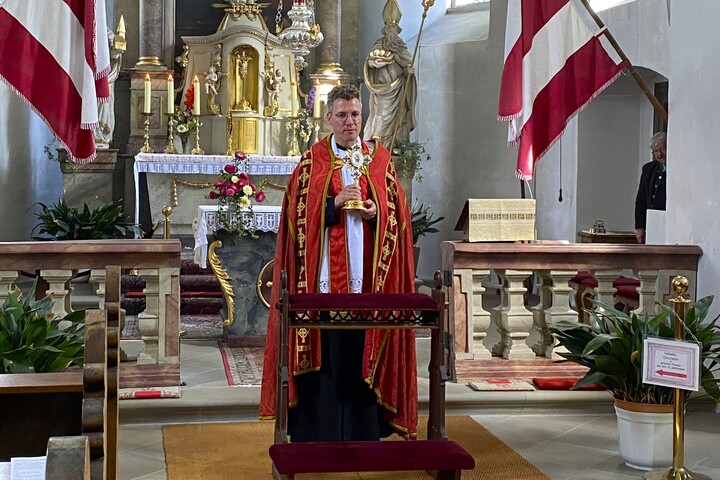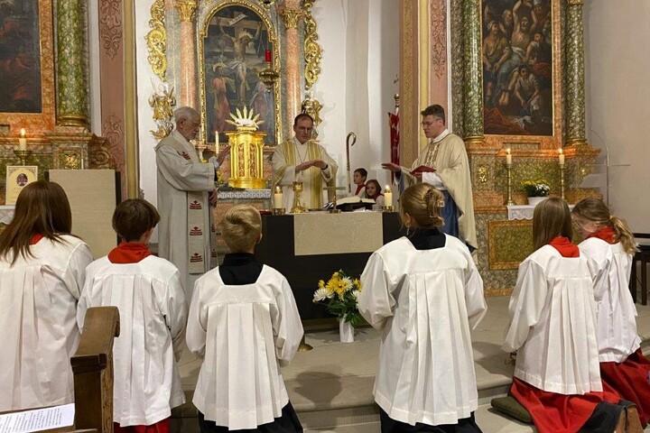 Eine festliche Messe feierten zahlreiche Gläubige am Abend des 29. September in Birnfeld mit. Das Fest des heiligen Erzengels Michael ist das Patrozinium der Pfarrkirche. Die Ministranten zogen mit Fahnen und Weihrauch unter festlichen Orgelklängen in das Gotteshaus ein. Pfarrer Dr. Eugen Daigeler zelebrierte das Hochamt und sprach in seiner Predigt über die Engel als Boten Gottes, die uns an seine Gegenwart und Weisung erinnern.