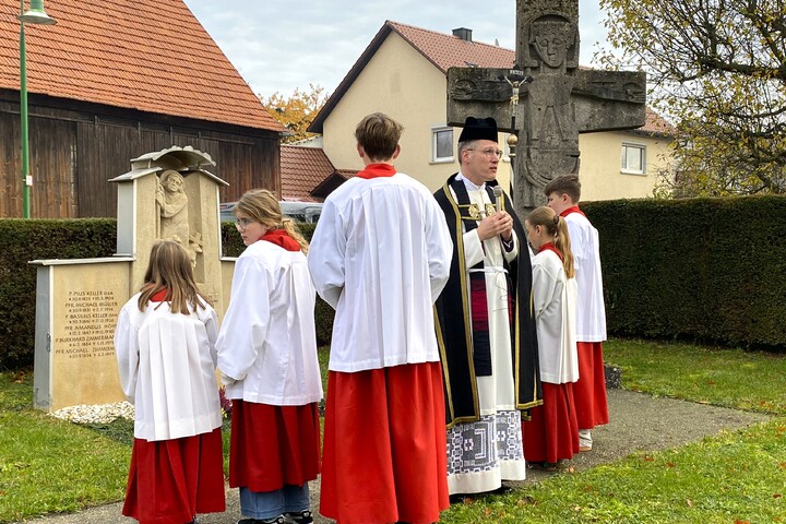Die ersten beiden Novembertage sind in unseren Orten vom Gedenken an die Verstorbenen geprägt. Im Schweinfurter Oberland kamen zahlreiche Gläubige zu den Gräbersegnungen auf den Friedhöfen zusammen. Die Seelsorger des pastoralen Raums verantworteten das Gebet für die Verstorbenen. In einigen Orten brachten sich hier auch Ehrenamtliche tatkräftig ein. Je nach den örtlichen Gegebenheit fanden die Friedhofgänge im Zusammenhang der Messfeiern an Allerheiligen und Allerseelen statt oder eigene Andachten am Nachmittag. Umrahmt wurden die Feiern von den Blaskapellen der Ortschaften.